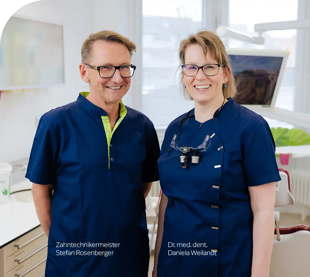 Was macht unsere Praxis in Oldenburg besonders? Bei uns profitieren Sie von einem außergewöhnlichen Vorteil: Zahntechnikermeister Stefan Rosenberger arbeitet direkt in unserem praxiseigenen Labor – mit über 30 Jahren Erfahrung und einem geschulten Blick fürs Detail. Das bedeutet für Sie: kurze Wege, direkte Abstimmung und ein eingespieltes Team, das Ihre individuellen Wünsche genau versteht. Ob es um die Farbe, Form oder den Sitz Ihrer neuen Prothese geht – Herr Rosenberger ist persönlich im Behandlungszimmer dabei, berät Sie fachkundig und begleitet die Entstehung Ihres Zahnersatzes von Anfang bis Ende.